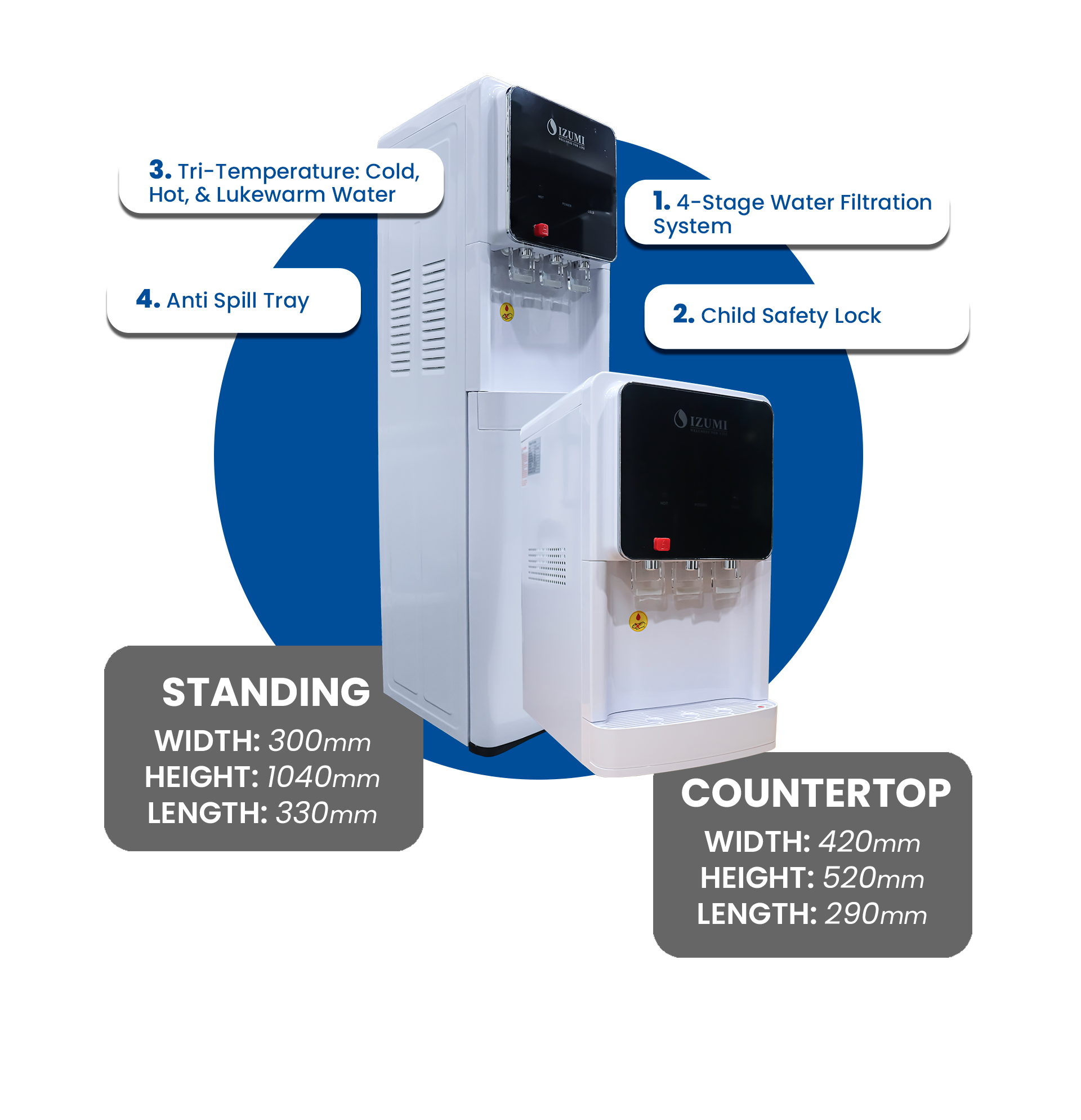 The Izumi Tri-Temp Bottleless Water Dispenser gives you unlimited clean and safe drinking water—directly from your tap.